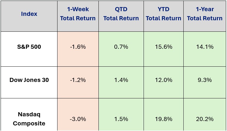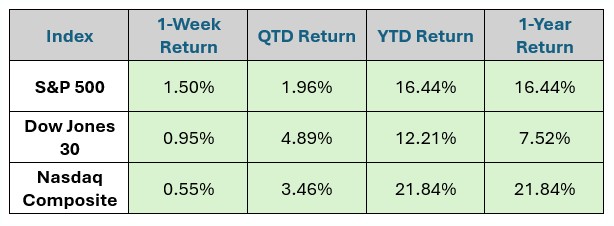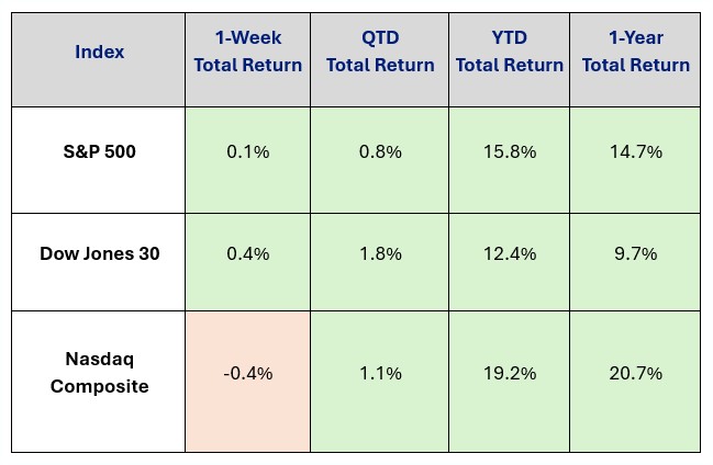 *The data for the total returns of the S&P 500, Dow Jones 30, and NASDAQ Composite are compiled and published by several financial news outlets, index providers, and government/academic sources.